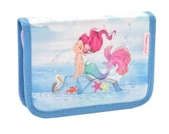 Hoch qualitatives Federmäppchen mit zwei Klappen. Das Innenleben des Federmäppchens besitzt zwei Klappen, beide Klappen besitzen auf der oberen Seite eine durchsichtige Hülle, eine davon mit Stundenplaner