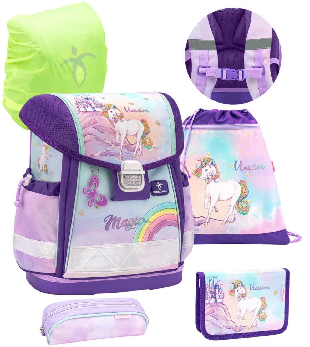 BELMIL Schulranzen Set Classy Rainbow Unicorn Magic Inkl. Regenschutz