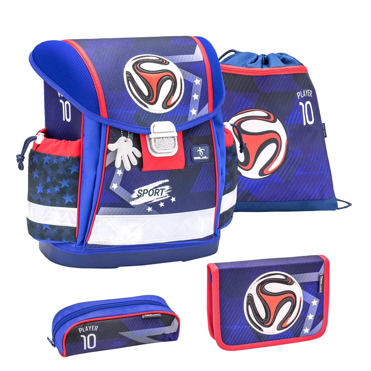 Der Turnbeutel von Belmil eignet sich perfekt für sportliche Aktivitäten. Der Inhalt kann einfach mit einem Kordelzug befestigt werden. Sie ist sehr leicht und platzsparend. Es wurde ein zusätzliches Reißverschlussfach hinzugefügt. Hergestellt aus robusten Materialien. „Smarty“ ist mit einem kompatiblen Turnbeutel ausgestattet, der sich leicht an der Schultasche befestigen lässt und so auch unterwegs problemlos und freihändig getragen werden kann. Er lässt sich an drei Punkten an der Schultasche befestigen: am oberen Deckel mit Klettverschluss und an beiden Seiten mit speziellen Haken an den Schultergurten