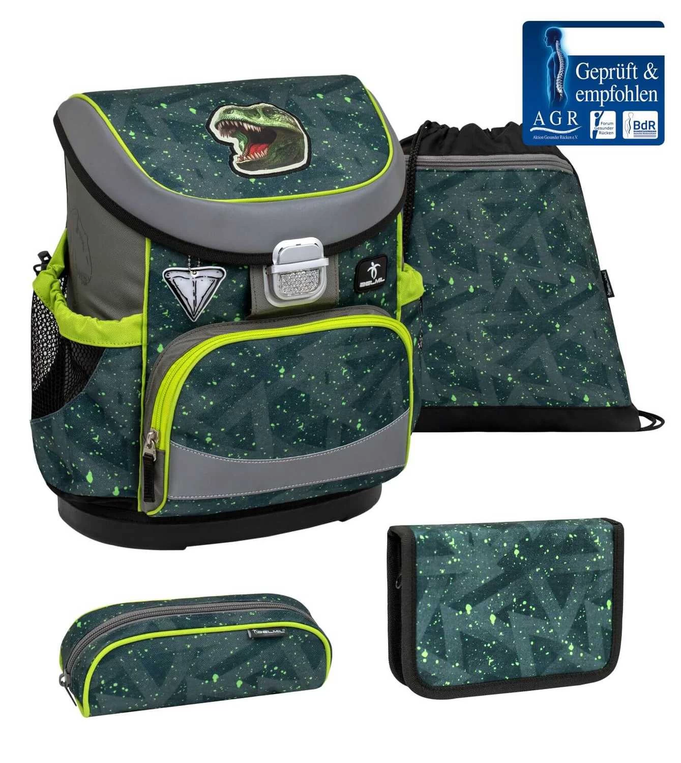 BELMIL Schulranzen Set Mini-Fit T-rex Roar Mit Regenschutz