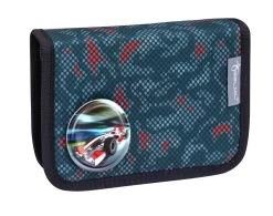 Hoch qualitatives Federmäppchen mit zwei Klappen. Das Innenleben des Federmäppchens besitzt zwei Klappen, beide Klappen besitzen auf der oberen Seite eine durchsichtige Hülle, eine davon mit Stundenplaner