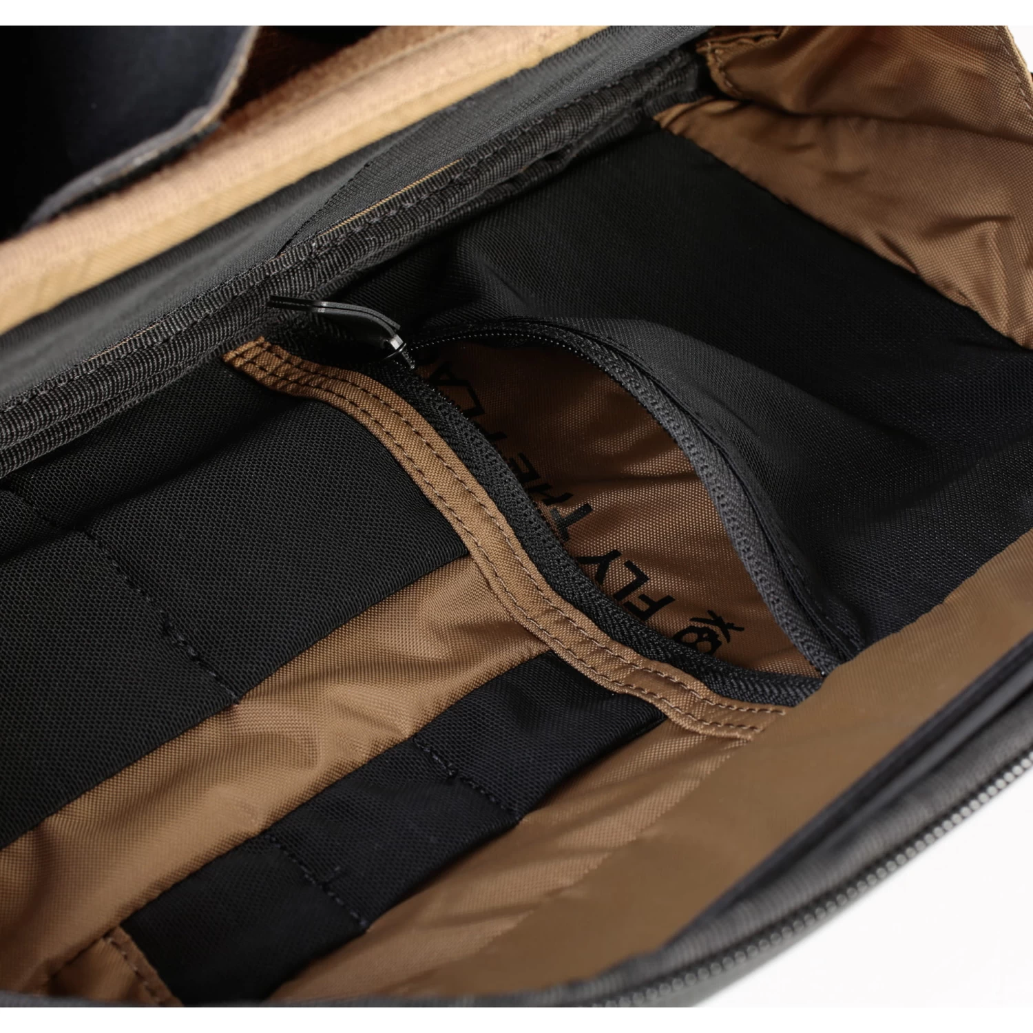 Innen bietet die Klappe maßgeschneiderte Fächer. Ein elastisches Netzfach mit Reißverschluss kann Filter, Deckel und ähnliches aufnehmen, weitere Einschübe halten Speicherkarten und Kameraakkus griffbereit.