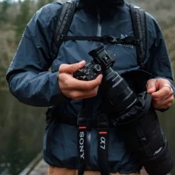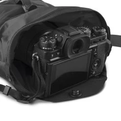 Den umfassenden Schutz hast du dem genialen Verschlusssystem zu verdanken: Es kombiniert einen Fidlock-Magnetverschluss, der dir schnellen, einhändigen Zugriff erlaubt. In diesem Tragemodus kannst du auch den Gurt deiner Kamera seitlich nach außen führen. Zusätzlich kannst du das Innenfutter als Rolltop aufrollen, wenn die Kamera vollständig verpackt werden soll.