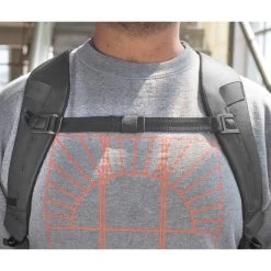 Ein abnehmbarer Brustgurt sorgt bei Bedarf für noch mehr Tragekomfort. Damit werden die beiden Tragegurte verbunden und halten sich dann gegenseitig in Position. So sitzt der Rucksack optimal am Körper, ohne dass er verrutscht. Der Brustgurt wird mit Aluminiumhaken in die Tragegurte eingehakt. Außerdem ist ein längenverstellbarer Hüftgurt als separates Zubehör erhältlich. Dieser überträgt einen Teil des Rucksackgewichts auf den Hüftbereich, um den Rücken weiter zu entlasten.