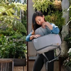 Ein abnehmbarer Brustgurt sorgt bei Bedarf für noch mehr Tragekomfort. Damit werden die beiden Tragegurte verbunden und halten sich dann gegenseitig in Position. So sitzt der Rucksack optimal am Körper, ohne dass er verrutscht. Der Brustgurt wird mit Aluminiumhaken in die Tragegurte eingehakt. Außerdem ist ein längenverstellbarer Hüftgurt als separates Zubehör erhältlich. Dieser überträgt einen Teil des Rucksackgewichts auf den Hüftbereich, um den Rücken weiter zu entlasten.