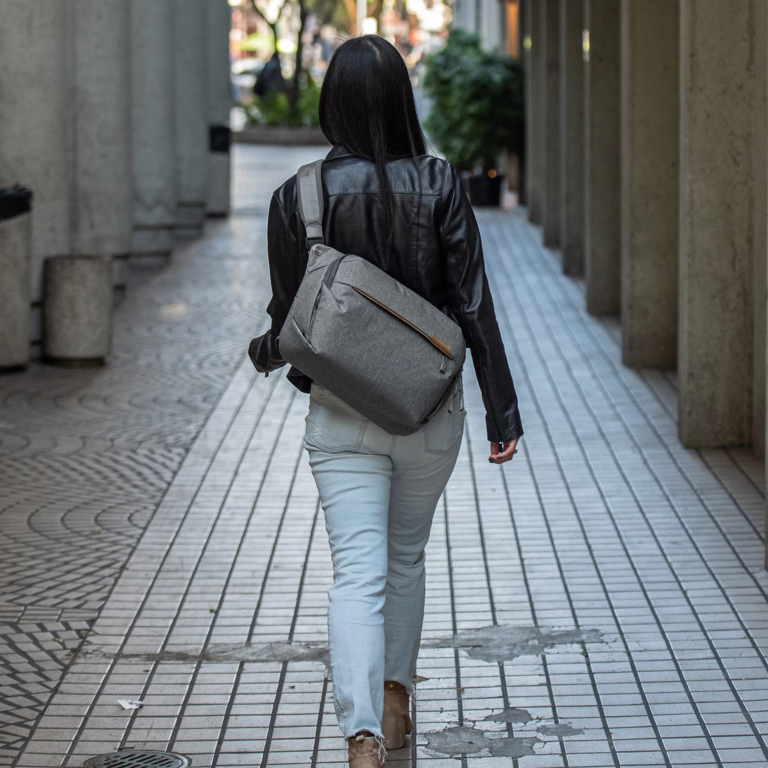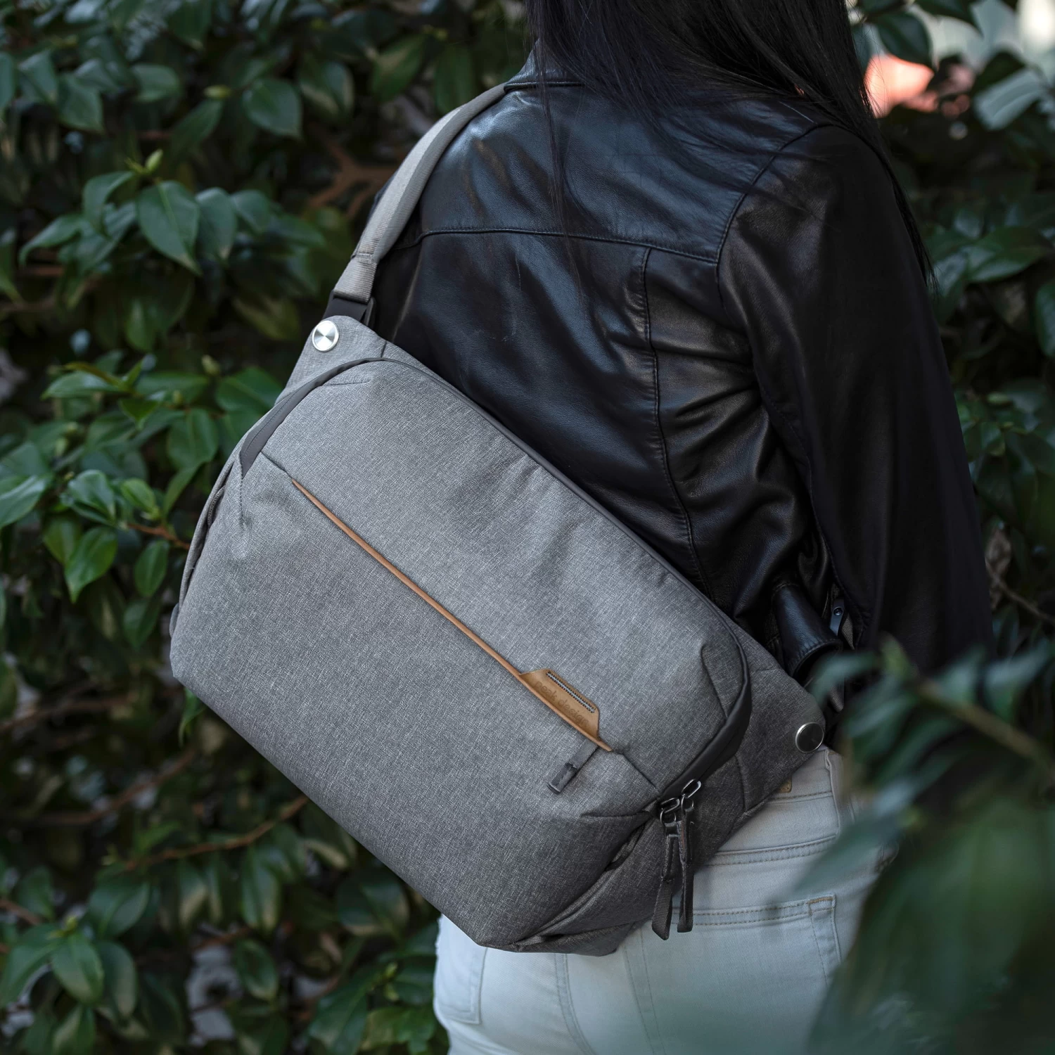 Als Umhängetasche passt sich die Everyday Sling 10L bequem dem Körper an. Ein gepolsterter Schultergurt mit Drehgelenken sorgt für einen optimalen Sitz, die Länge kann zusätzlich mit dem bewährten Peak-Design-Schnellverschluss beliebig angepasst werden. Immer unterwegs? Auch auf Reisen bewährt sich die große Everyday Sling und der stabile Tragegriff hakt die Tasche sicher am Reisetrolleys fest.