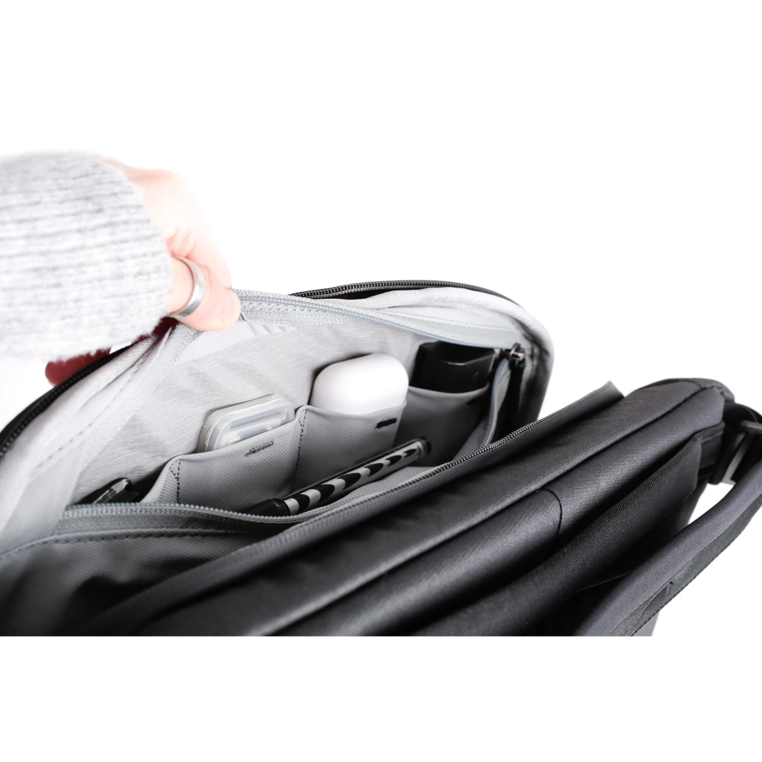 Als Umhängetasche passt sich die Everyday Sling 10L bequem dem Körper an. Ein gepolsterter Schultergurt mit Drehgelenken sorgt für einen optimalen Sitz, die Länge kann zusätzlich mit dem bewährten Peak-Design-Schnellverschluss beliebig angepasst werden. Immer unterwegs? Auch auf Reisen bewährt sich die große Everyday Sling und der stabile Tragegriff hakt die Tasche sicher am Reisetrolleys fest.