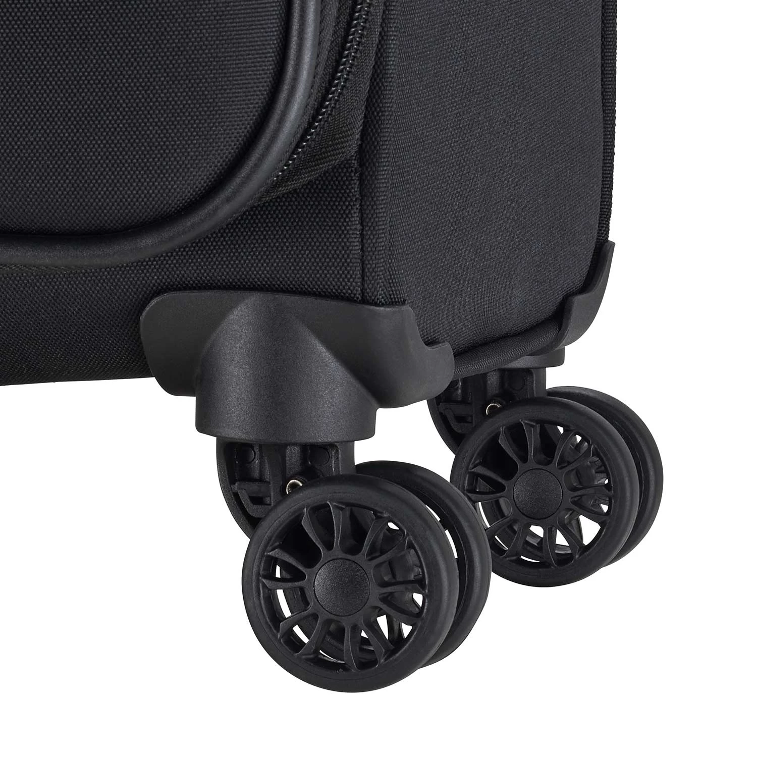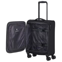 Mit stylisch und dennoch einfachem Look überzeugen die aus reißfestem Polyester gefertigten Trolleys der Serie CHIOS von travelite. Mit 4-Doppelrollen ausgestattet sind sie in den Größen L, M und S verfügbar. Das integrierte TSA-Sicherheitsschloss (Nur M+L) sorgt zudem für die Sicherheit des Gepäcks. Die vielen Außentaschen sowie der strukturiert aufgebaute Innenraum mit Packgurten und separatem Wäschefach sorgen dafür, dass beim Packen keine Unordnung entsteht. Die L- und M-Trolleys von Chios sind zudem im Volumen erweiterbar und der S-Trolley eigenen sich dank ihrer Maße als Bordgepäck und sind durch ihre Aufsteckfunktion am Gestänge der anderen Trolleys fixierbar.